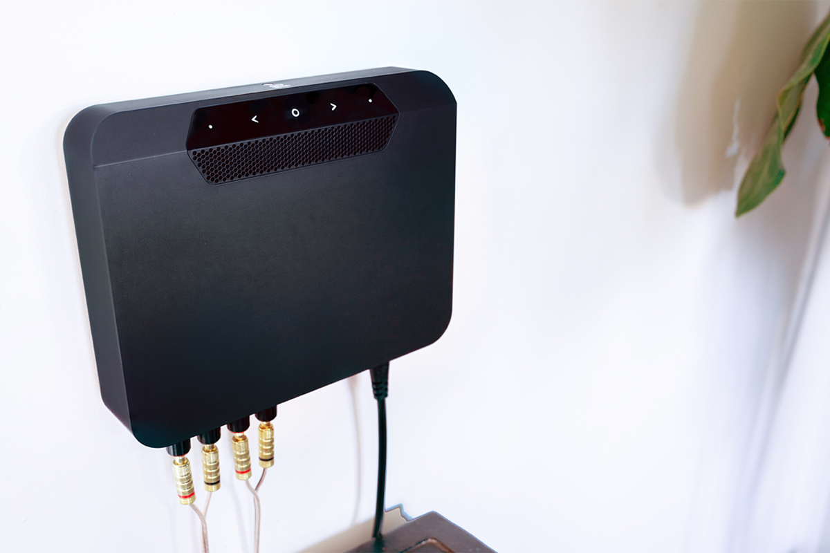 Most users will use the BluOS Controller app to control the Powernode Edge. (A third-party infrared remote control can be used to adjust volume or skip tracks.) For quick adjustments, the Powernode Edge has a capacitive touch panel that offers play/pause, mute, skip, and volume functionality.