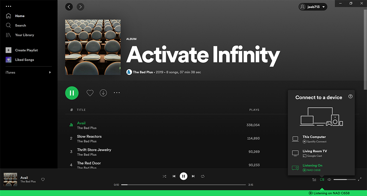 Before buying the Spectre, I sometimes used my MacBook to control music playback, sitting it on my lap while I sat in the sweet spot on the sectional sofa in our living room. And sometimes I used my iPad Mini or, occasionally, a smartphone. In addition to Roon, I’d run the BluOS Controller app that works with my NAD C 658 streaming DAC-preamp.